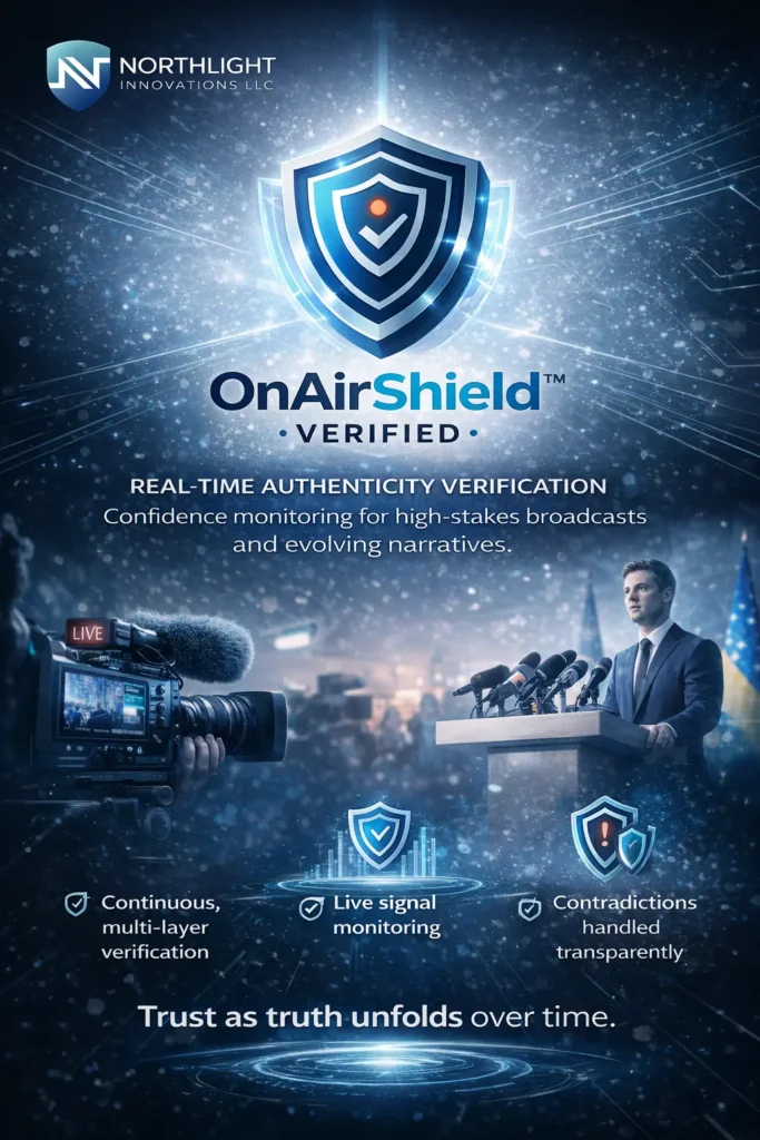 It overlays real-time trust indicators during broadcasts and streams, helping audiences understand what’s known, uncertain, or evolving without interrupting the moment or editorializing the content.